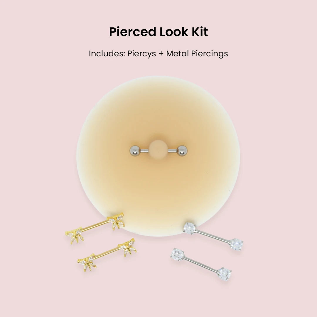 The Pierced Look Kit is made for nights when you want the aesthetic without the commitment. Piercys are pierced nipple covers designed to give you that bold detail in seconds. The Metal Piercing Add-On lets you switch up the look depending on your mood, your outfit, or the moment.